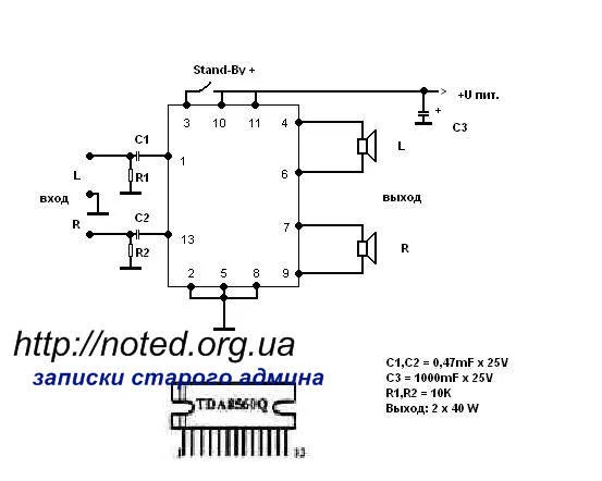 НЕМОГ СПЕРВА подключить,не играло,попробовал подключить к 1 и 13 ножке и вуаля, заработало, 2я ножка не используется,ножка 2 общий вход звука, проблема в том что у меня получился моно звук,что я не так сделал,делал по этой схеме