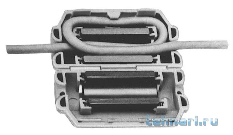 Ни надо ни чего мотать, сейчас ставят ферритовую бусину в качестве дросселя . Можно и более витков мотать (конструкция на 3 рисунке), но хватит и 1-2 витка. Тут используется магнитожесткий феррит (широкая петля гистерезиса) с большими потерями по высокой частоте. Это и будет Вашим дросселем, который установите на питающий провод, то освободится место в корпусе. Предохранитель ведь можно поставить и после дросселя.что в посте 458 какой мотать дросель?
