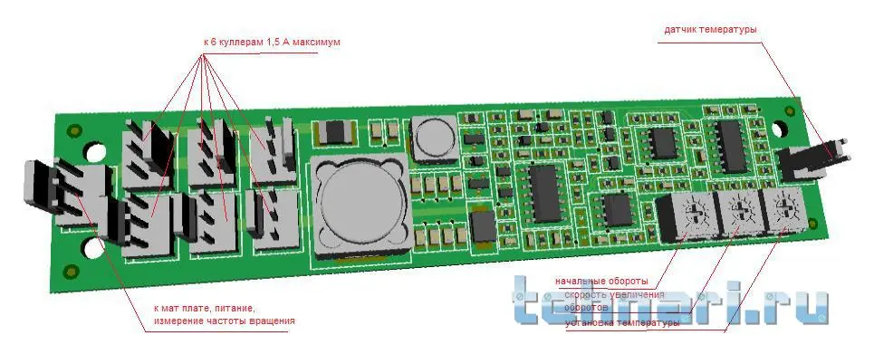 Устройство работает с ШИМ-управляемыми и с не управляемыми куллерами (3 или 4 вывода).
