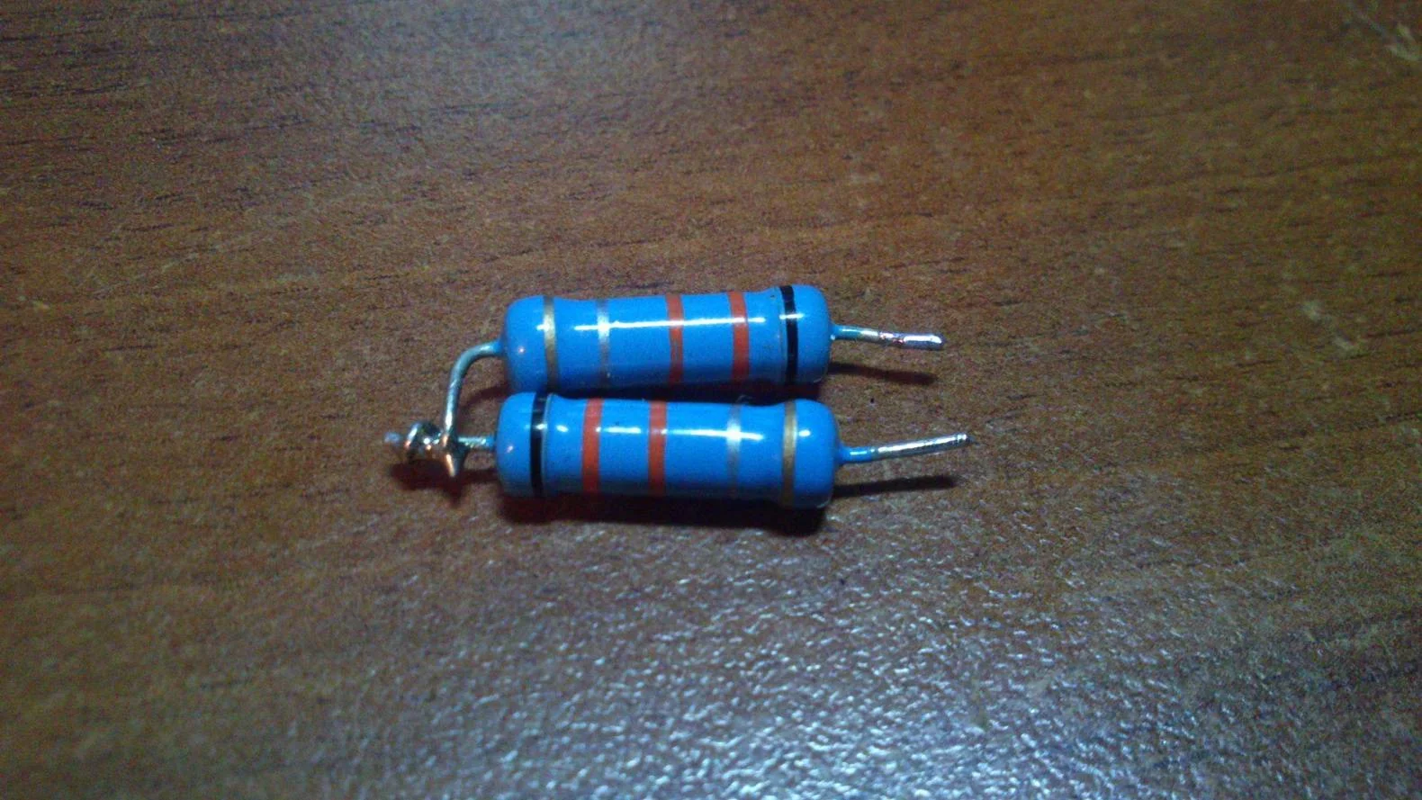 неправильно резисторы определил (коричневый-черный-золотистый-золотистый-зеленый - 1ом и зеленый-черный-серебристый-золотистый-красный - 0,5ом)