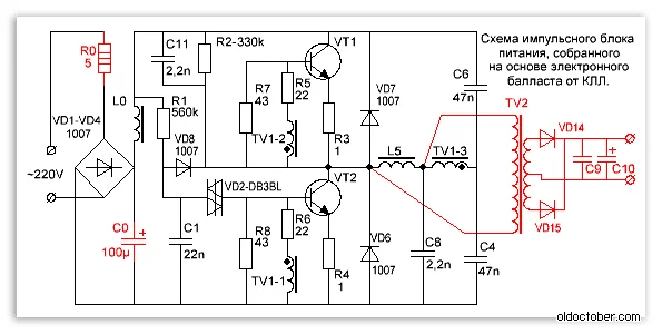 Очень простой импульсный блок питания можно собрать из электронного балласта сгоревшей лампочки КЛЛ.