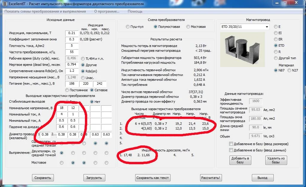 В одной программе первичка 0,38х2, в другой - х3, и вторичка разное число жил.