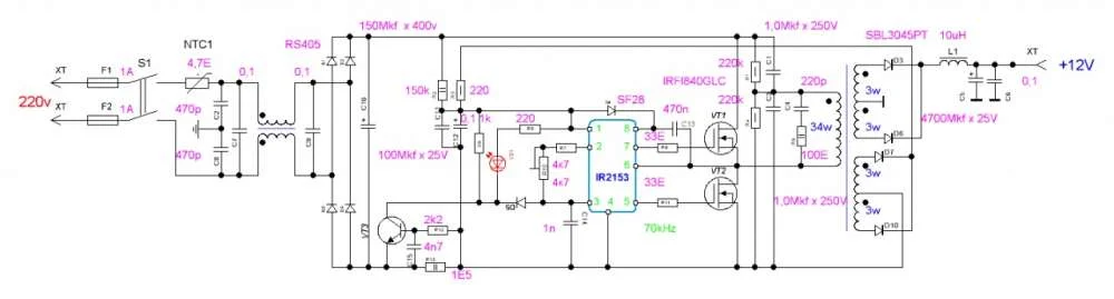 Предлагаемой ИИП построен на основе IR2153, наиболее простой и не требует какой либо настройки.
