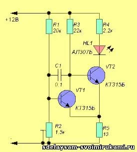 Здрасте. Нашёл схему малопотребляющего индикатора. Когда напряжение снизится - светодиод вспыхнет сразу на полную яркость?