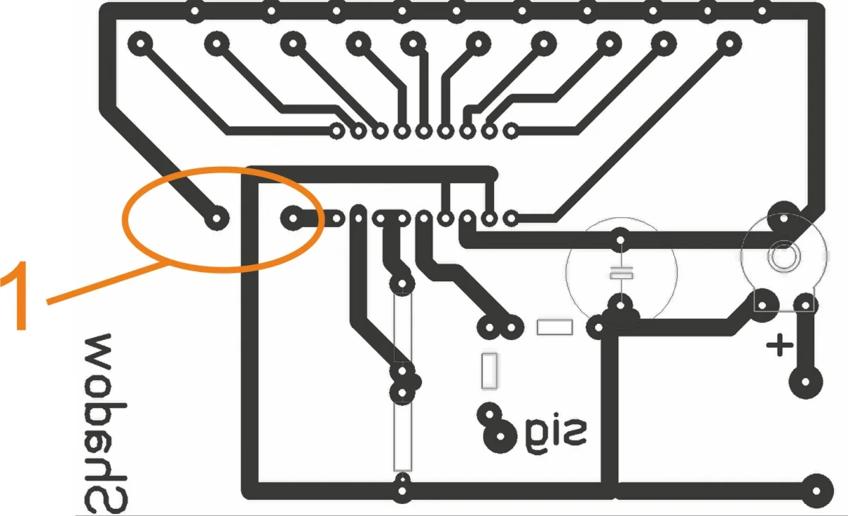 Цифровой 3 обведены контакты перемычек, которые переключают эффект меняющего размеры столбца и бегущей точки. Соединять надо крайне левую площадку с одной из оставшихся (+ или - питания).