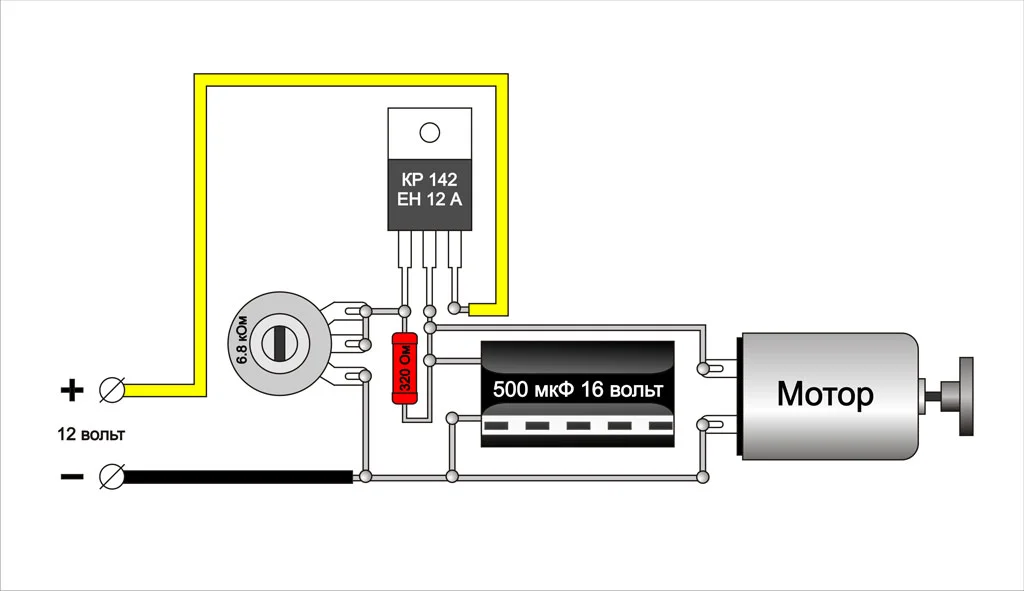 5. Переменный резистор (потенциометр). То, что ты крутишь для регулирования оборотов.