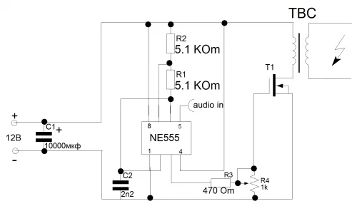 Там частотой беззвучной дуги надо добиться и все вроде, если модуляция работает - должно сразу запеть, если не поет или ооочень тихо - играть с конденсатором на 5й ноге (в моей 1й схеме на не555). Вроде все, добавляйте с чем сталкивались.