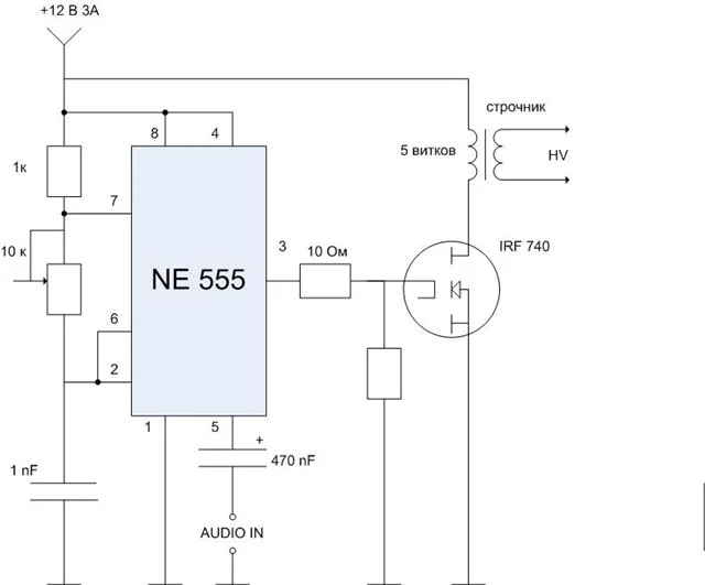 Отзыв о ней: "у мня звук очень тихий получается, хотя дуга порядка 6 см при питании схемы от 12 в"