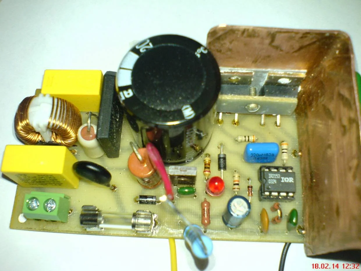 P.S : на третьем фото сопротивление временно (R10-0.51 Om*2w); выходные диоды MUR820; кольца дросселей диаметром 12мм салатного цвета от материнской платы Т-50 материал 52; транзисторы irf840; входная емкость 220*400в., питание ir2153 - 15.6в., (гасящий резистор 18кОм*2 ватт); светодиод al307; вот как-то так.............