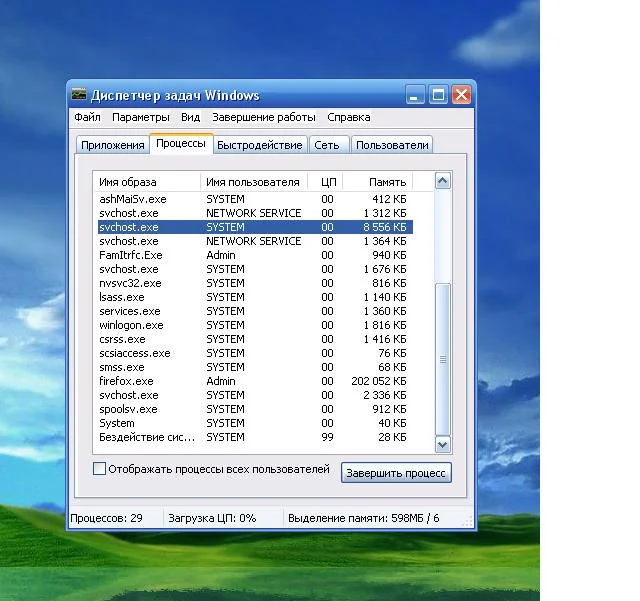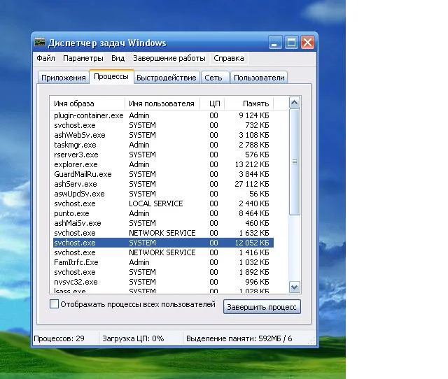 4. Какой процесс(ы) в Диспетчере задач потребляет больше всего системных ресурсов в момент зависания (медленной работы)?