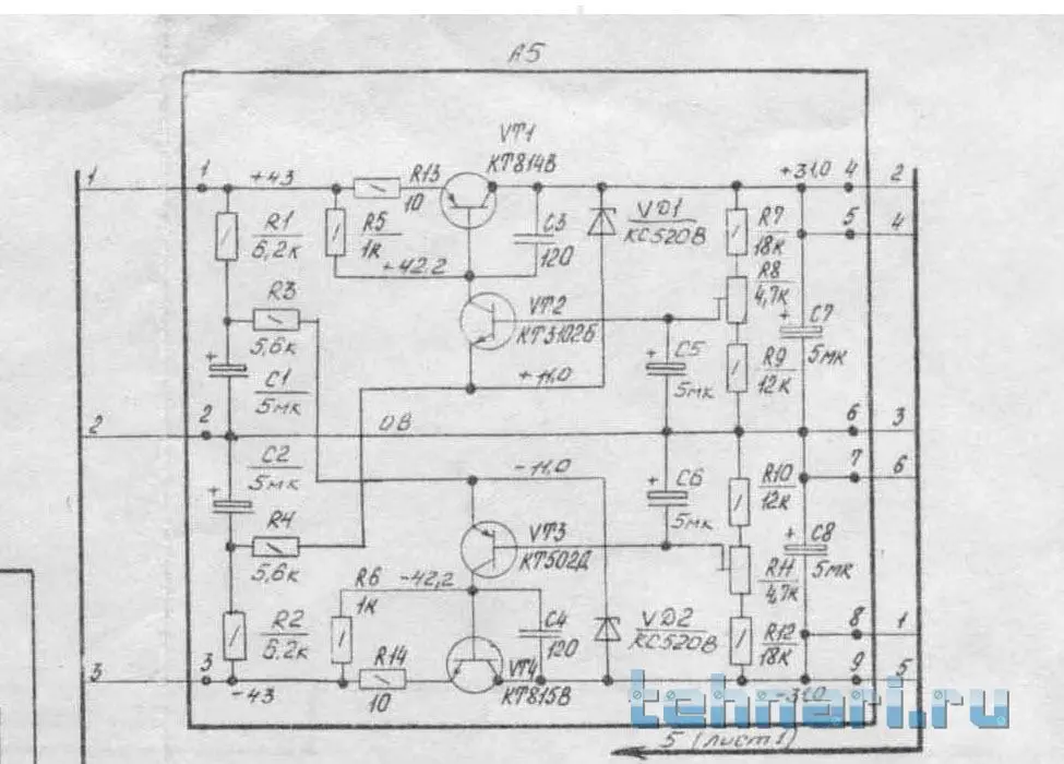 Есть стабилизатор в усилителе Амфитон. На входе 43В, на выходе +-31В