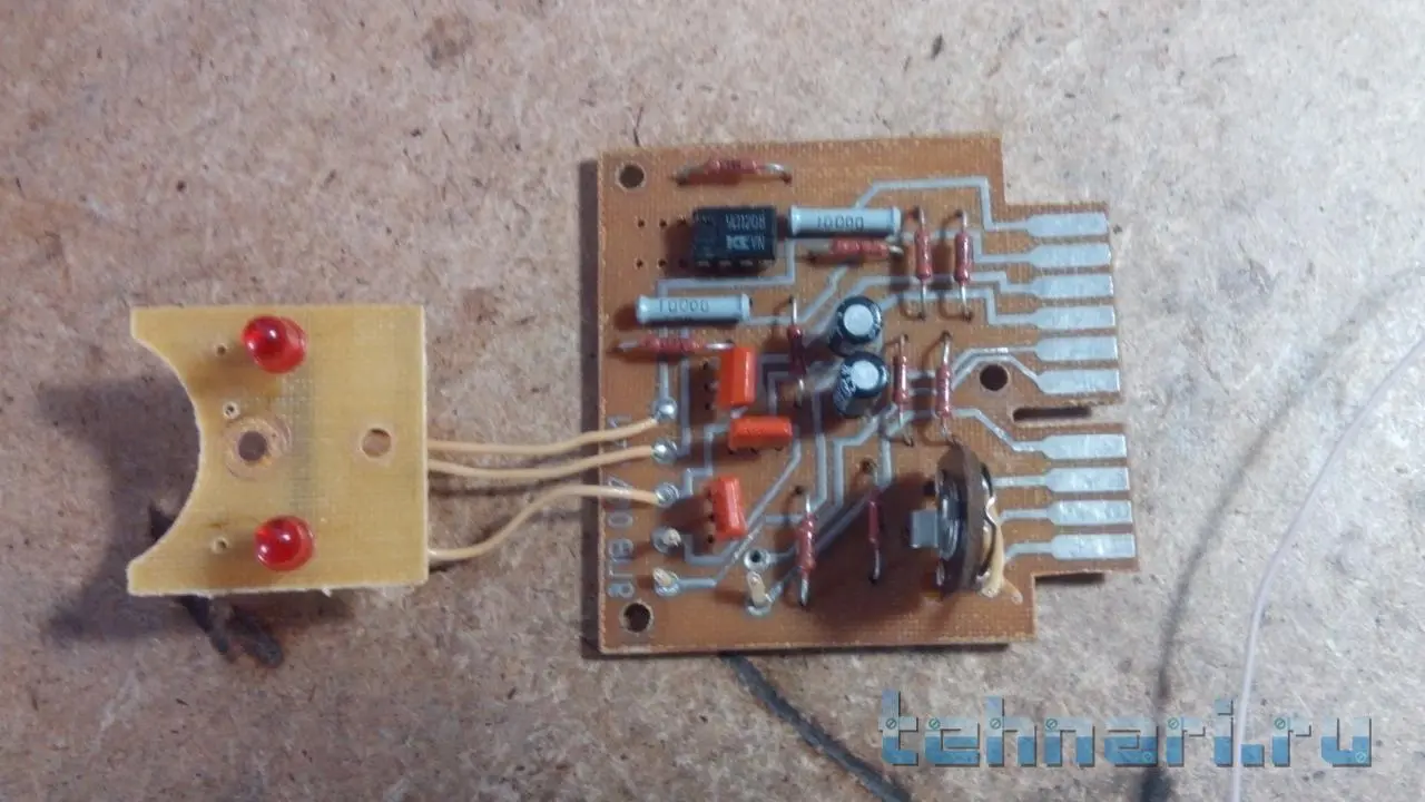 Там два светодиода с электронной схемой на трёх транзисторах и операционннике. Вопрос по прежнему стоит!