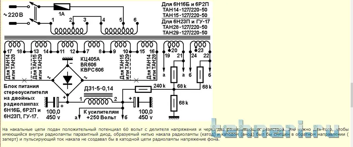 В предложенном варианте получали потенциал +60 В, но это нужно скорее всего для фазоинверсных и драйверных ламповых каскадов, работающих на больших амплитудах входных сигналов! В предусилителях размах сигналов не такой большой, поэтому и потенциал можно делать в пределах +20 +30 В.
