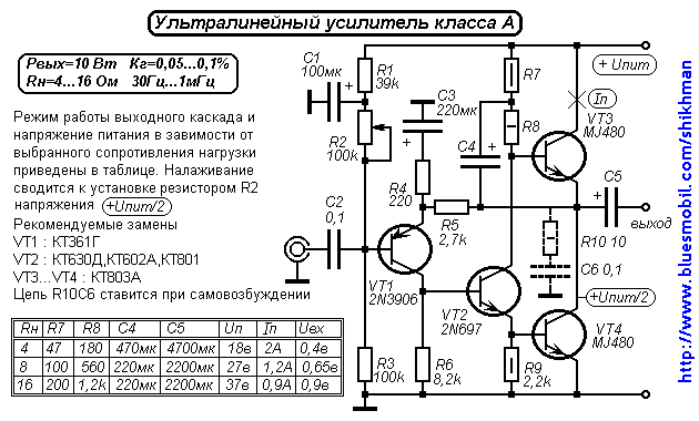 схема качественного УНЧ что то типа класса A но что бы не очень много потребляла схема?