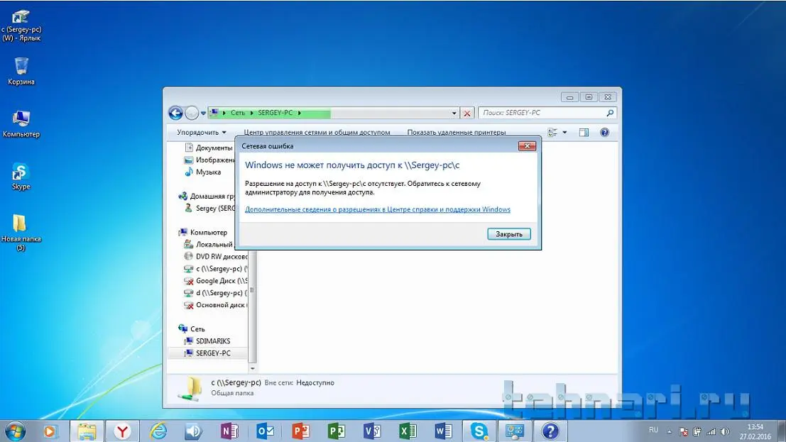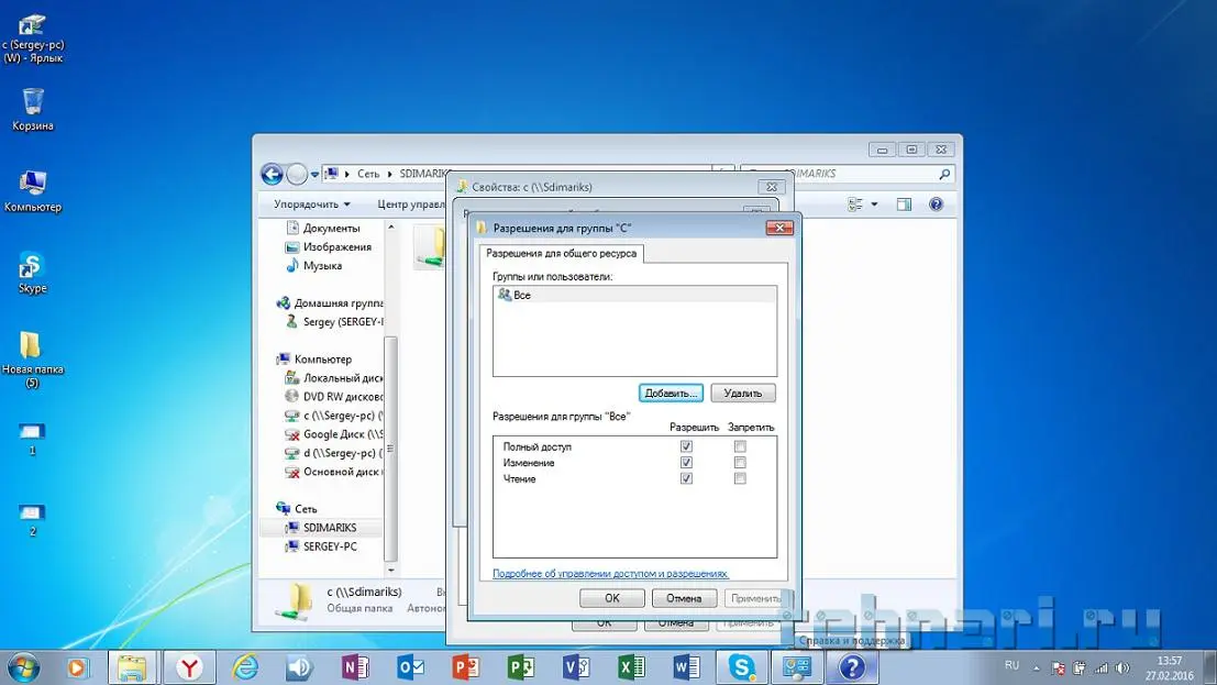 То, что изображено на 2.jpg и 3.jpg нужно делать на компе "Sergey-PC". Если компы не в домене, нужно организовать "Домашнюю группу" (ИМХО).