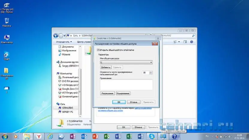Идем в "Панель управления" - "Сеть и Интернет" - "Центр управления сетями и общим доступом" - "Изменить дополнительные параметры общего доступа" и включаем: сетевое обнаружение, общий доступ к файлам и принтерам, доступ к общим папкам и принтерам. А так же отключаем общий доступ с парольной защитой.Затем проверяем что бы у компьютеров была одинаковая рабочая группа и они принадлежали к Общественной или Рабочей типам сетей (задается при первом подключении компьютера к сети, позже можно поменять в настройках).Теперь проведем несколько несложных манипуляций и откроем полный доступ к системному диску.Итак: