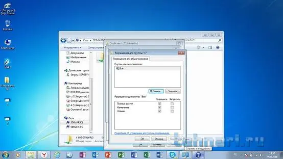 6. Далее задаем параметры доступа (для наглядности примера даем полный доступ, по желанию можно поиграть с настройками). В столбце "Разрешить" ставим галочку напротив строки "Полный доступ" и получаем: