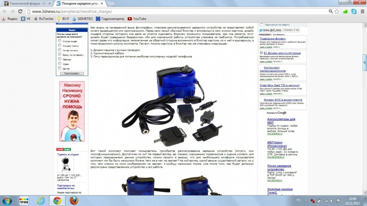 Мне подарили походную динамо зарядку "экспедиция" но в походе выяснилось, что что бы зарядить с её помощью смартфон практически невозможно, после полу часа непрерывного вращения, заряда хватило, на включение смартфона и несколько секунд его работы, правда и аккум у него уже давнопользуемый, на своем HTC incredible s дома попробовал, зарядил 2% за 15-20 мин вращения, от зарядки розетки те же 2% нагоняет за 1-2 минуты, от юсб примерно так же.