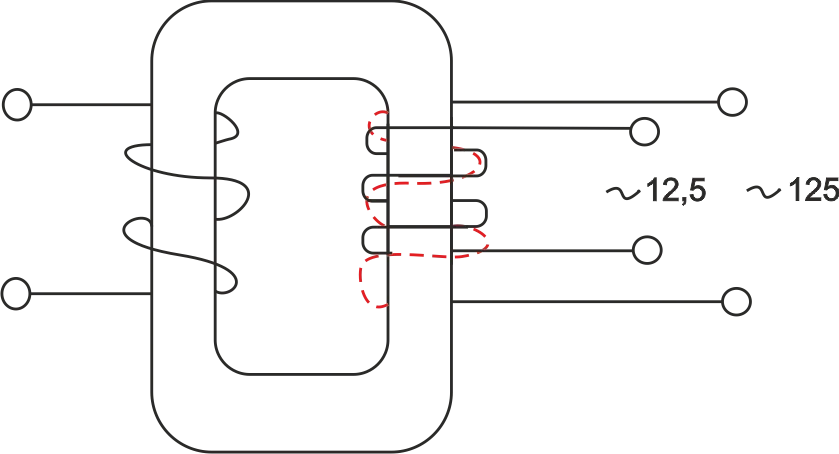 посмотрите можноли сверху намотать вторички как на рисунке ну если 1 вторичка в 125в займет весь магнитопровод а поверх него несколько других вторичек с меньшим номиналом