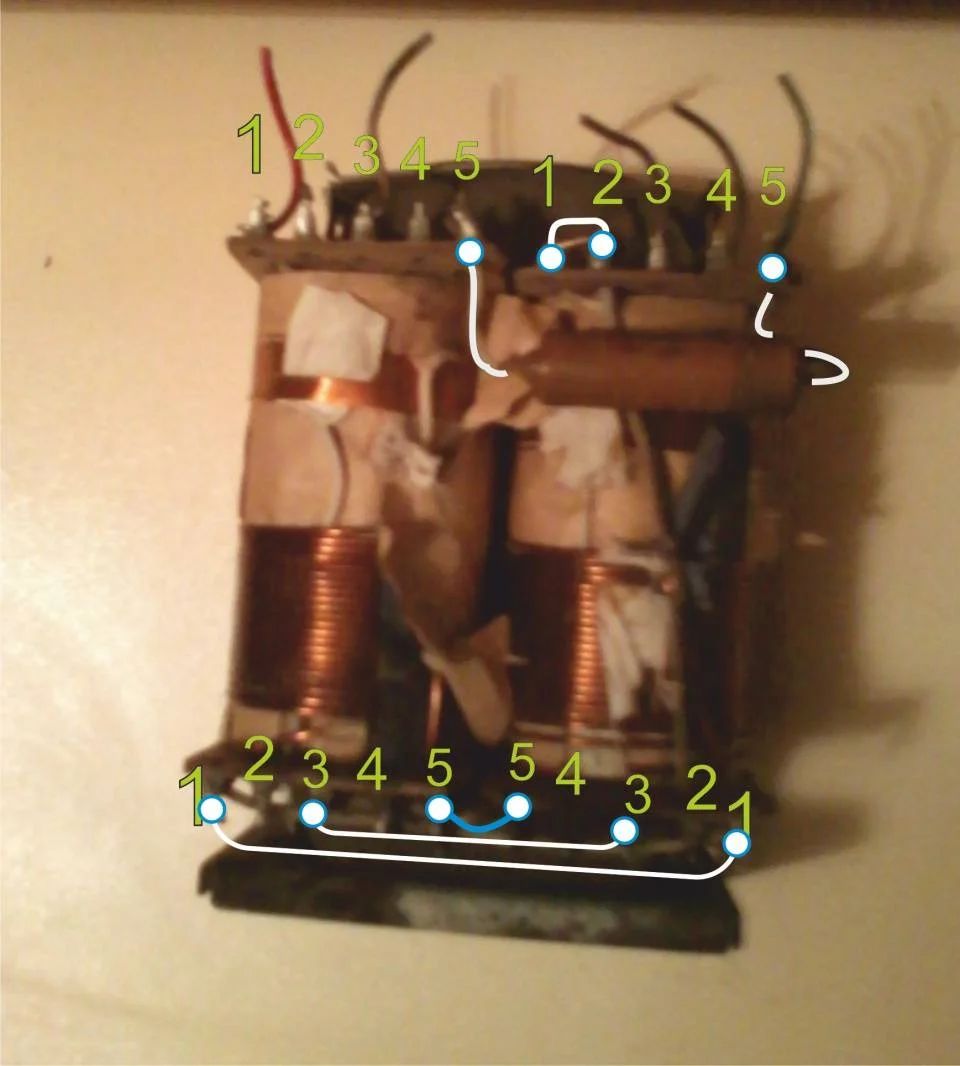 В моих размышлениях - выгорит та перемычка. Или не так думаю? Нет, я встречал подобное размещение первичных обмоток, но они были между собой соединены пайкой - провод сетевой кусочек между клеммами.