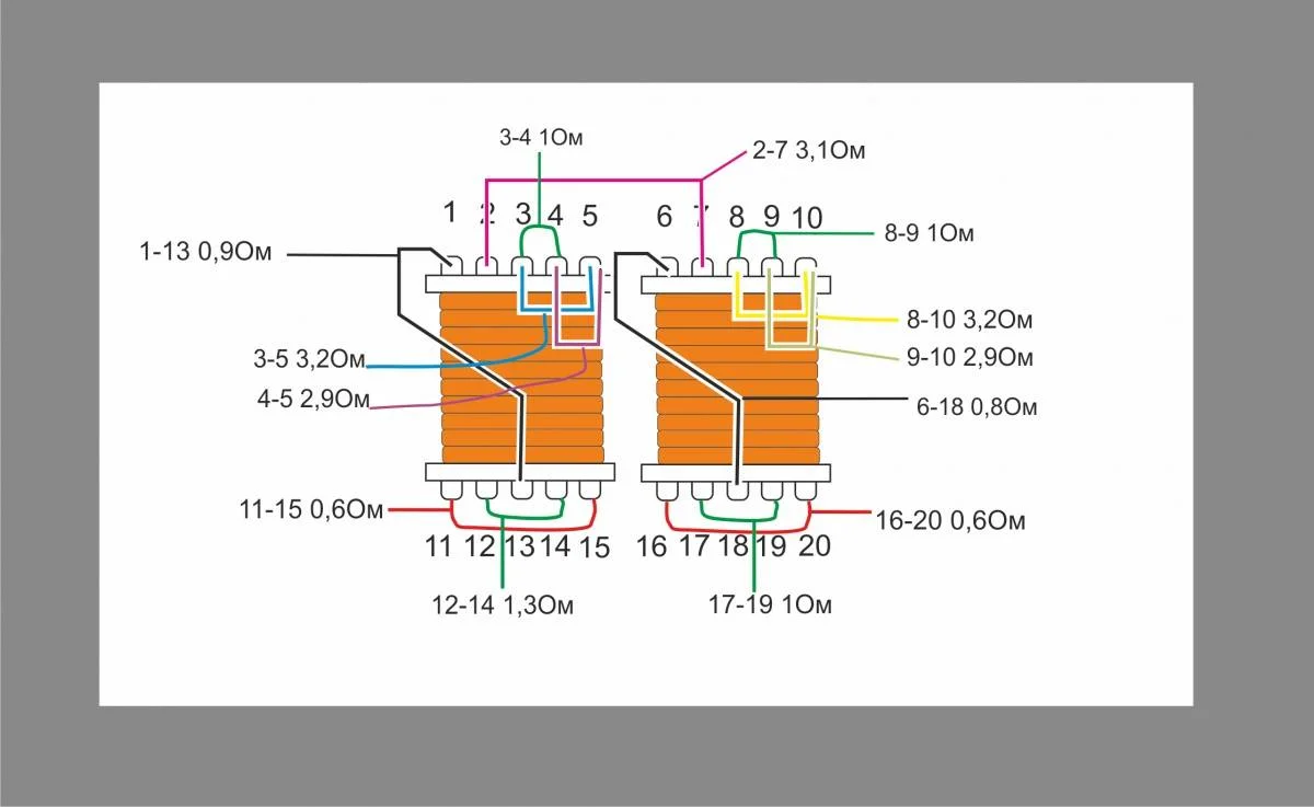 Размотал я вторички и и соединил первичких конец одной с началом другой в итоге R стало 5,6 Ом первичка состоит из 2 проводов один кусок 330 витков+110 т.е 440+440 но почему такое маленькое сопротивление? диаметр точно не мерил на глаз где то по миллиметра