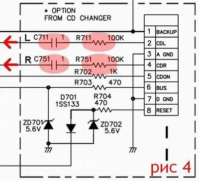 Сань, в этой магнитоле сзади разъем для подключения CD-чейнджера должен быть. Если его нет, то должны быть дырки на плате. Его активация во вложении. Я на своей делал, работает до сих пор. У меня при долгом нажатии на кнопку BAND на дисплее появляется CD и работает линейный вход.