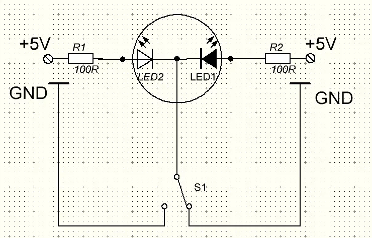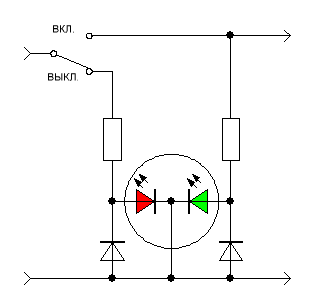 Как подключить двухцветный светодиод? Нужна схема