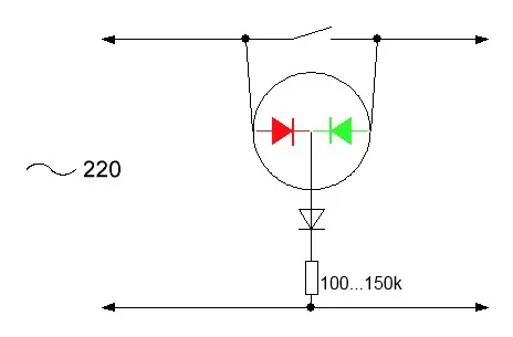 на переднюю панель усилка хочу поставить двухйветный индикатор . чтоб при включении в сеть горел одним цветом а при включении усилка загорелся другим цветом . эсть схема такового ?