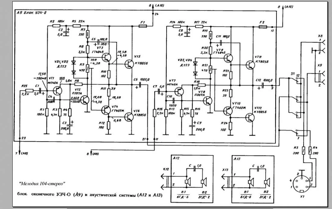 Как подключить усилитель от Radiotehnika Мелодия 104?
