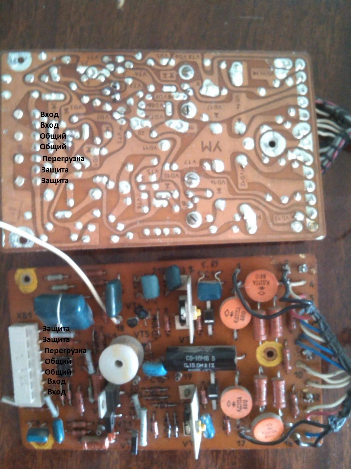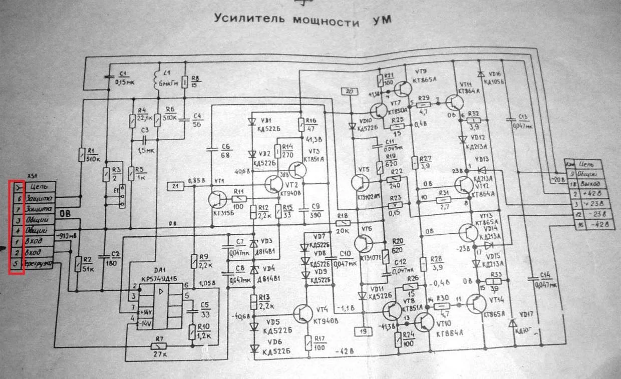 Есть у меня 2 усилителя от корвет 100у. Но по схемме номера контактов не совпадают с печатной платой. Вы мне обьясните: что какой провод?