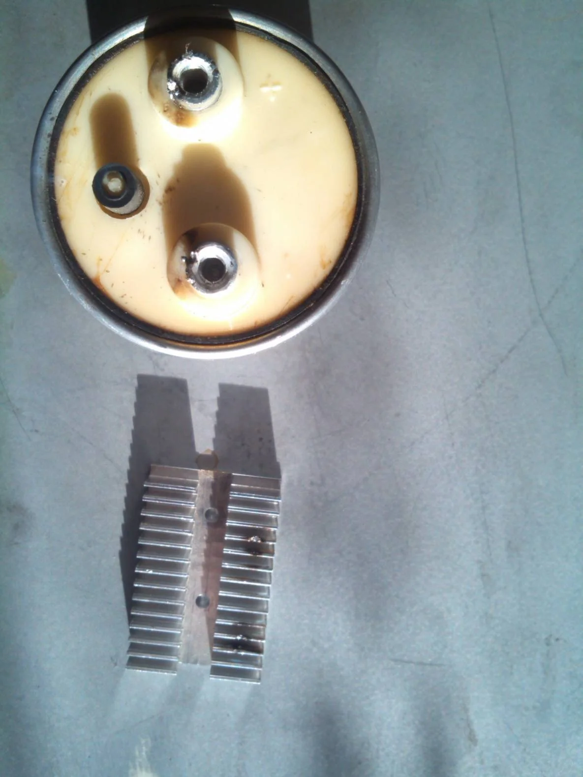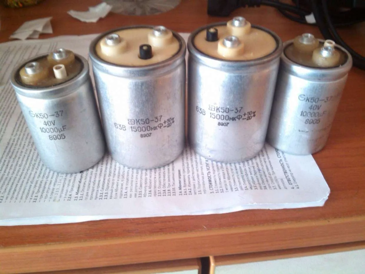 А вот так конденцаторы (кстати очень хорошие)... И в конце как я решил разрядить кондер на 15000мкф))) Сильный взрыв и по столу полетели расплавленные капли аллюминия)