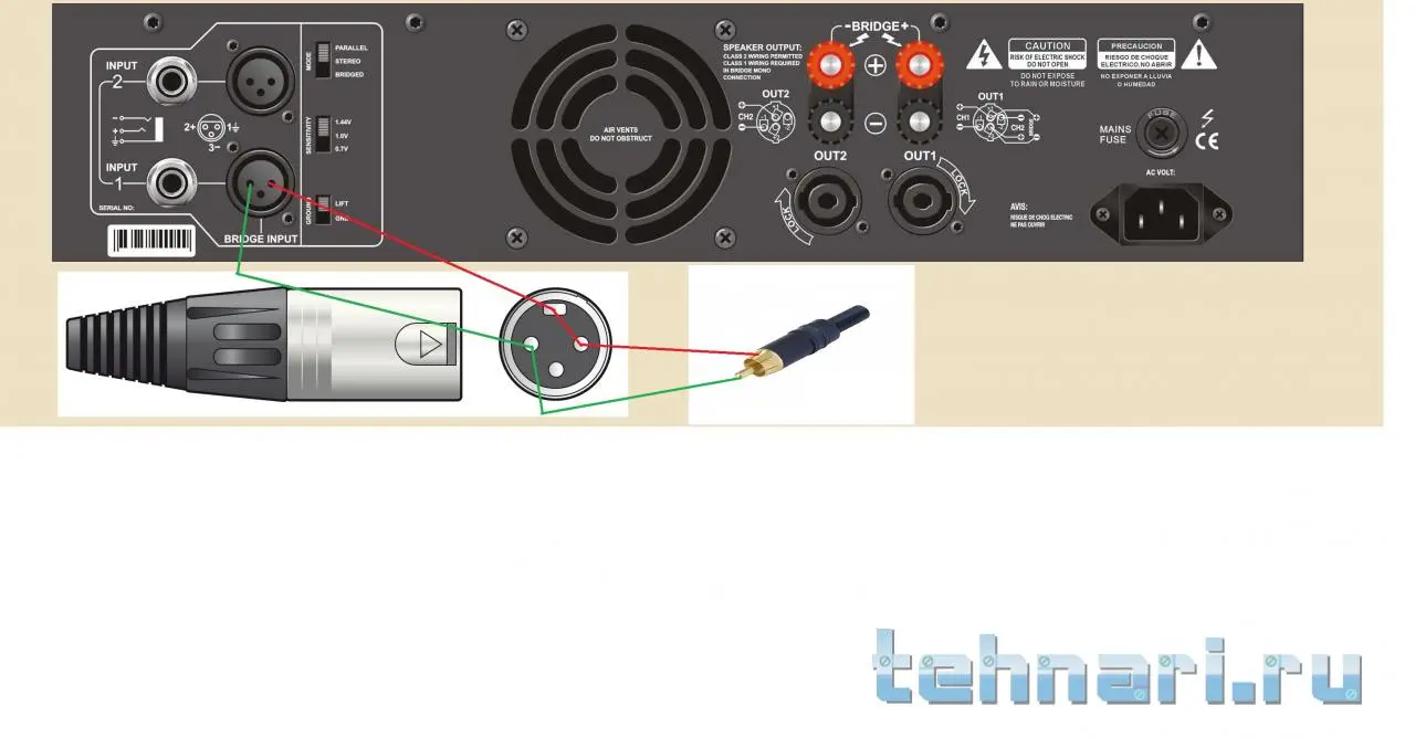 как подсоединить вот этот усилитель. Audio Force MA-300 к компьютеру. первое и второе фото самого усилителя. 3 фото проводов с какими он мне достался. 4 фото это то как провода спаянны. меня интересует правильно ли они спаянны? так как минус припаян на заземления и на корпус этого штекера XLR. хотя у усилителя минус есть. перепаивать на минус надо или нет? и как усилитель подключить к компьютеру? микшера пока нет но скоро куплю