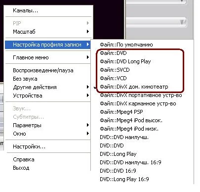 на скрине, выбор в каком качестве запись будет - это не настройки для приема...