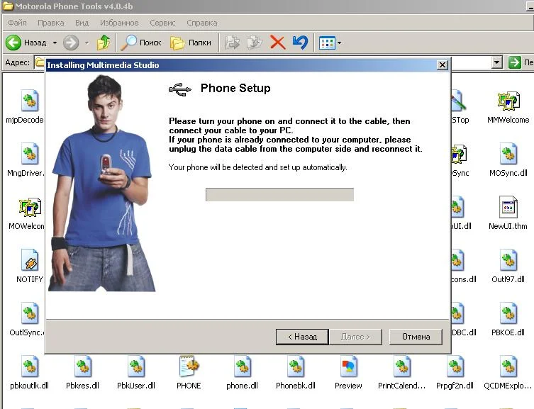 Помогите разобраться! Знакомые отдали старенький мобильник Motorola V3, в нём встроена видеокамера и в памяти загружены фотки. Подключил мобильник к компьютеру через USB кабель, установил драйвера, комп мобильник опознаёт, но почему-то его нет в Мой компьютер.