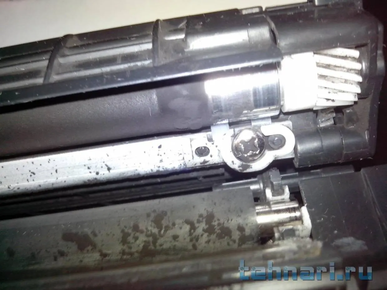 Вал резиновый протирал, не трескается, т.е. эластичный. Лезвие снимал, тоже протирал, отсек отработки пустой. В общем, снимал все, кроме магнитного вала, дабы тонер не растерять.