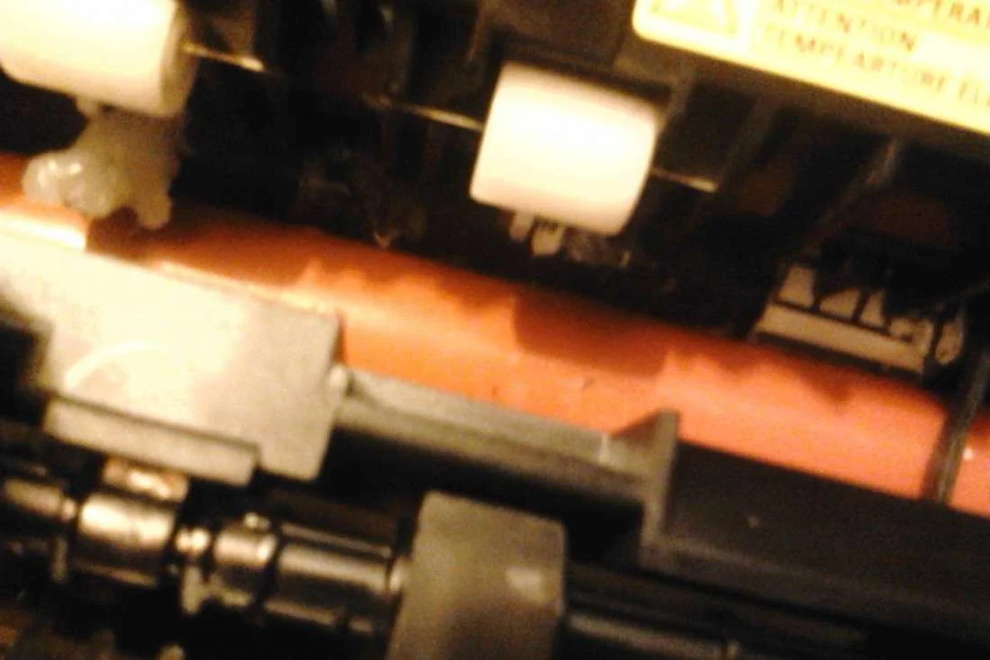Долго я думал что делать и куда пропала обложка, пока не нашол люк за печкой Там обгаружилось 2 валика нагревательный и мягкий, к обоим мелеметровым слоем прилипла та самая клеёнка уже в расплавленном виде.