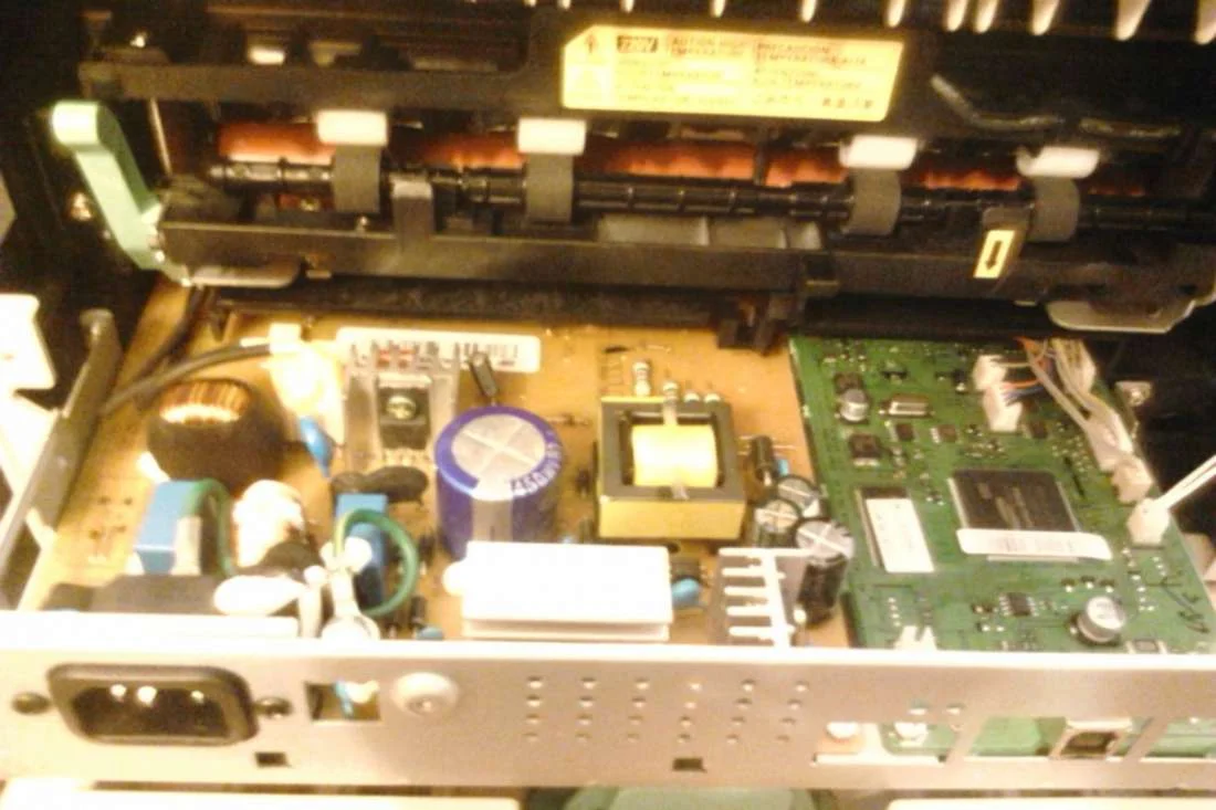 Ковырялся я долго и решил разбирать принтер дабы вытащить валики и очистить, благо по гарантии его уже точно не возьмут. Сейчас сижу как бабка у разбитого корыта и разбираю попутно просматривая схемотехнику встроеного импульсника.