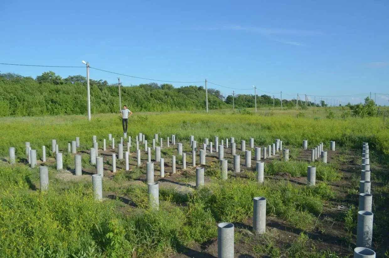 Сегодня погода дала возможность немного поработать и после обеда установил ещё 16 столбов (опоры для лаг).