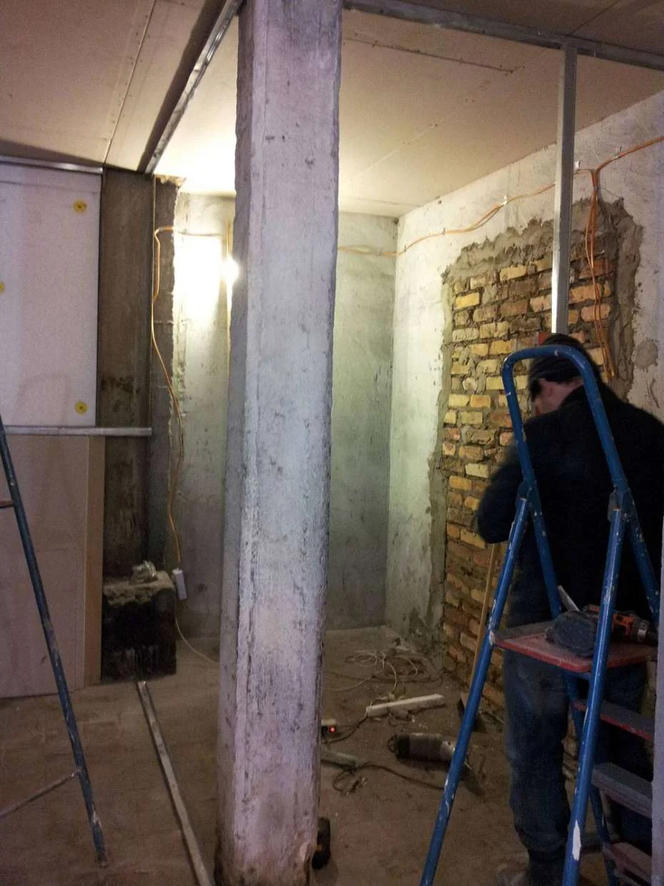 Не понял зачем направляющие, я крепил гипсокартон прямо к стенам, кирпичным.гипсокартон с направляющими.