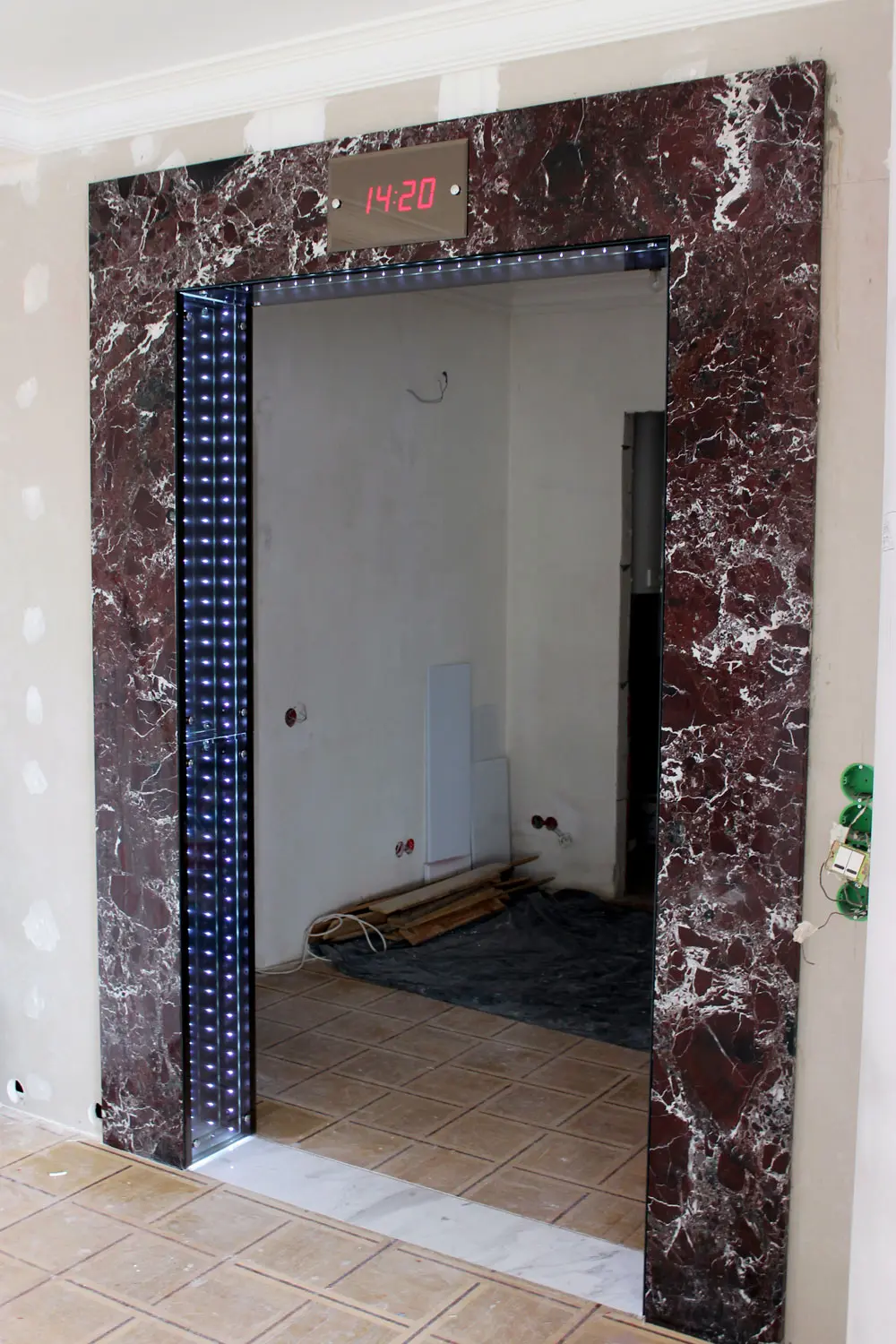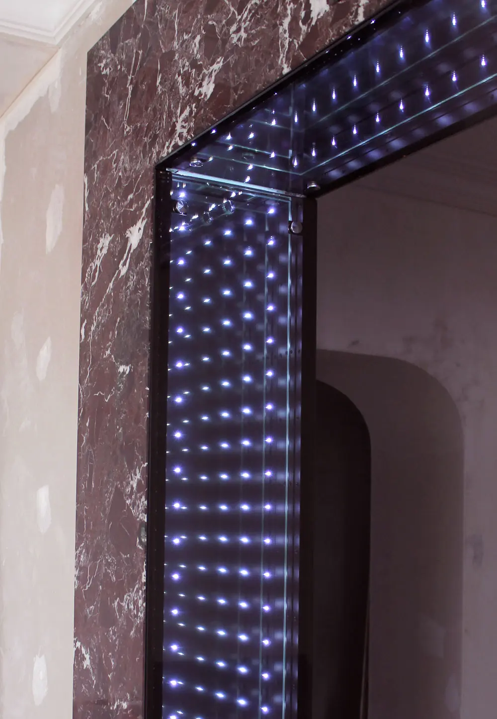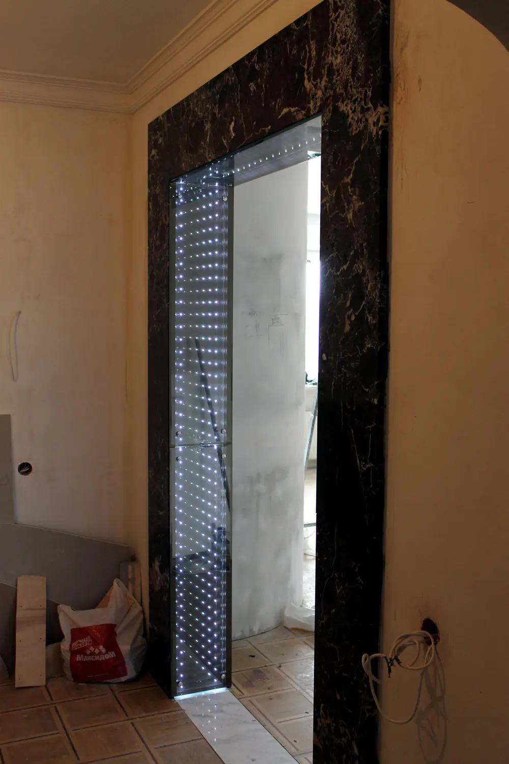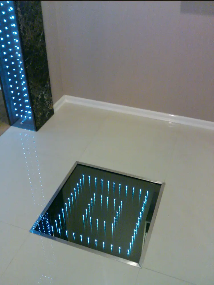 Делал в полу, но стрёмно получается, люди перешагивают, а не наступают. Причём был очень похожий портал, но заказчику этого было мало и я сделал ещё и в пол. :))