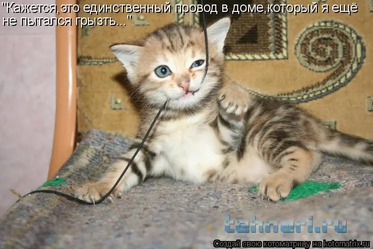 собака малая.главное пару дней назад только вилку сменил,сейчас полностью кабель менять придется.приучает собака к порядку.ничего не должно лежать просто так