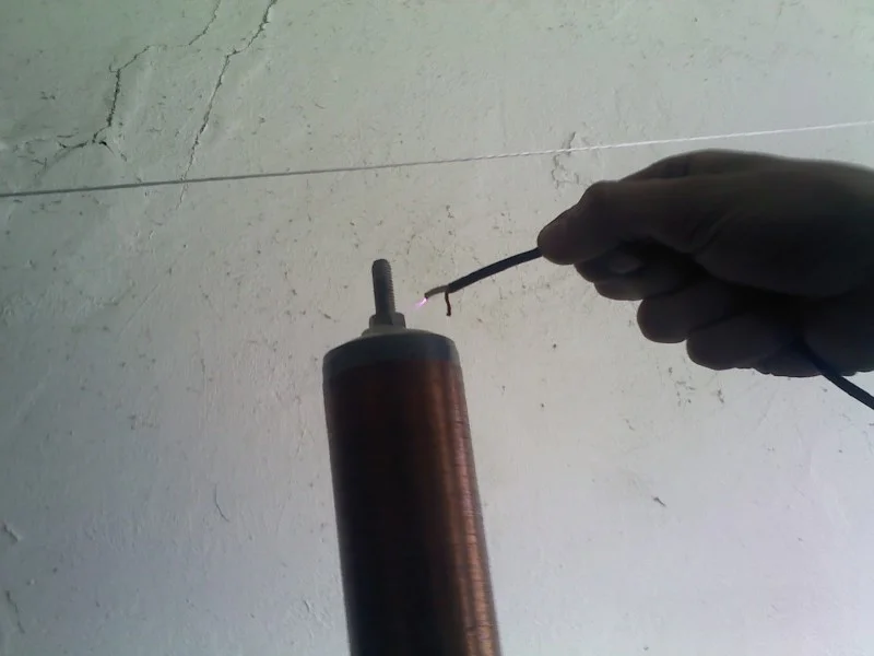 Не нашёл медной проволоки подходящего диаметра, взял несколько проводов и скрутил их вместе, потом обмотал изолентой. Катушка работает. Длинна плазмы порядка 3-4 см. Чуть доработаю и выложу фото.