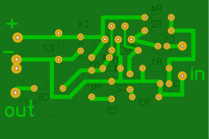 у меня однополярное для одной мс нужно и робит только одна мс , в ворд файле рисунок печатки зеркальный ,нарисуйте что убрать и объясните для чего перемычка ?!достаточно для двух TDA2030 (в двуполярном включении)