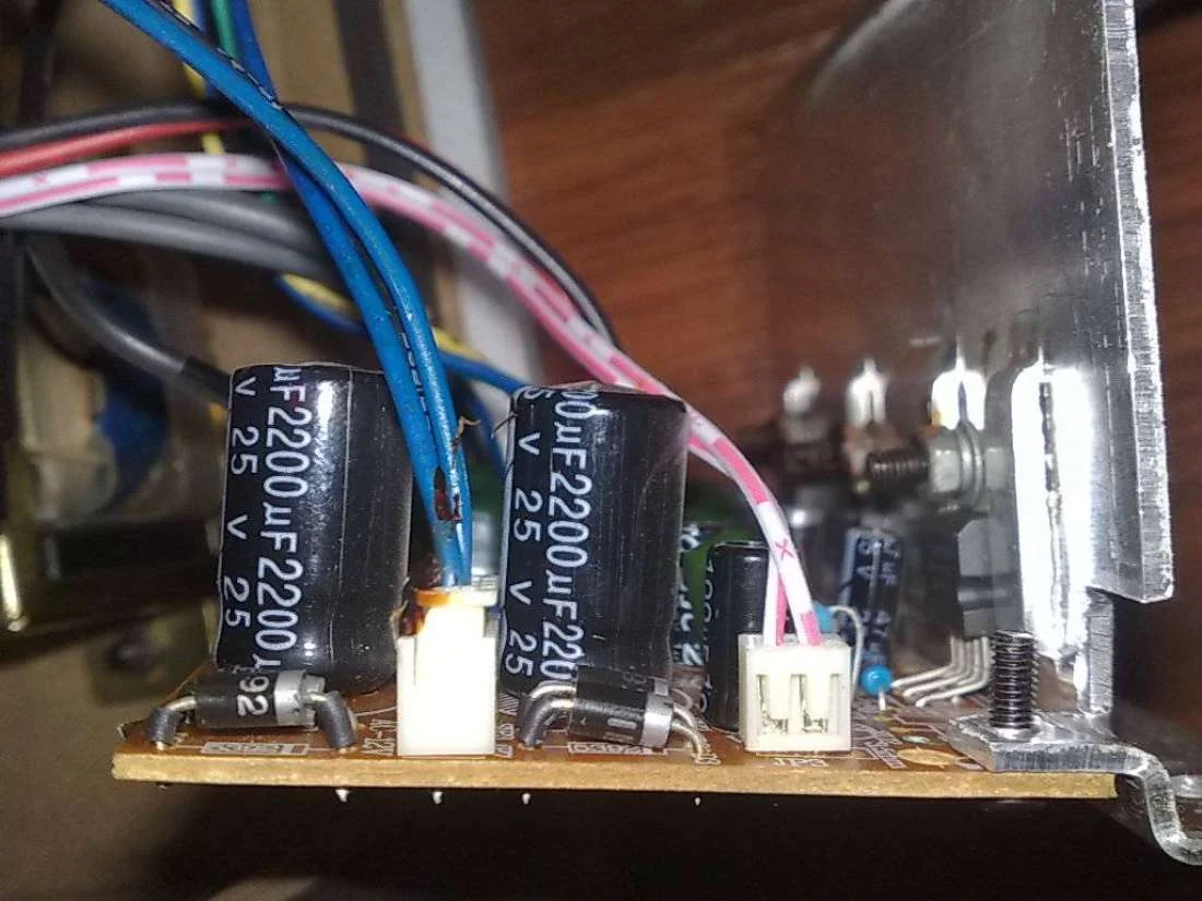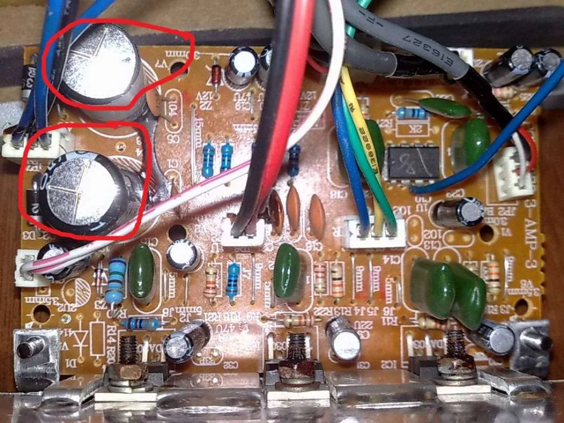вот эти конденсаторы (видишь они вздутые) замени на конденсаторы 35в 5000мкф . напряжение можно больше чем я указал а ёмкость не меньше 3000мкф . замени их и будем наденется что больше ничего не полетело .