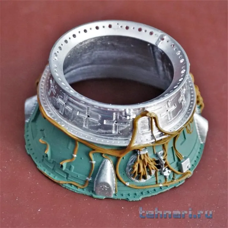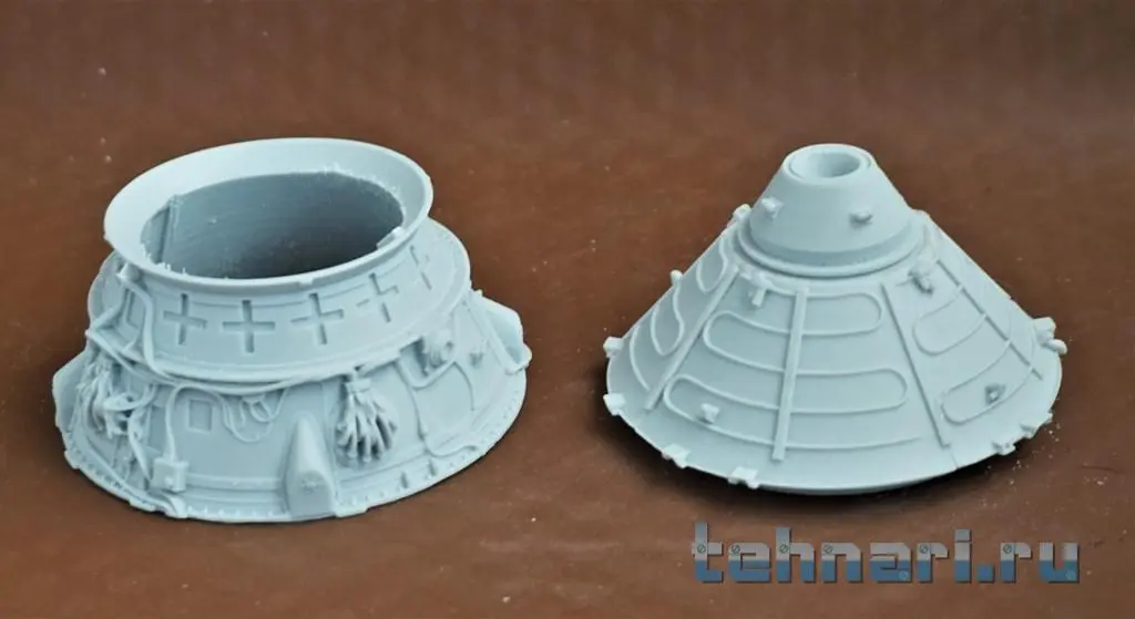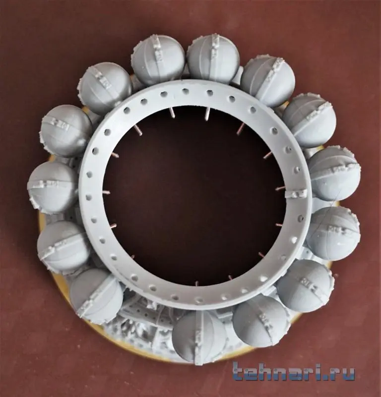 На кораблях данной серии раскрываемые ленточные антенны были расположены только на кожухе ТДУ(3шт). Данные антенны даны в плате фотошопа. Вычленяем элементы из платы, производим их гибку и сборку, а затем окрашиваем и устанавливаем на кожух ТДУ. Пока на этом работа с ПО завершена, плавно переходим к сборе корпуса спускаемого аппарата (СА).