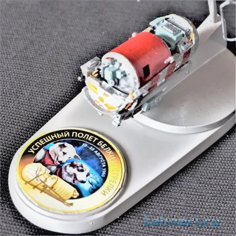 Далее следует фотосессия кк"Восток-1К"(спутник-5)на котором совершили орбитальный полет и вернулись на землю собаки Белка и Стрелка. Модель на подставке.