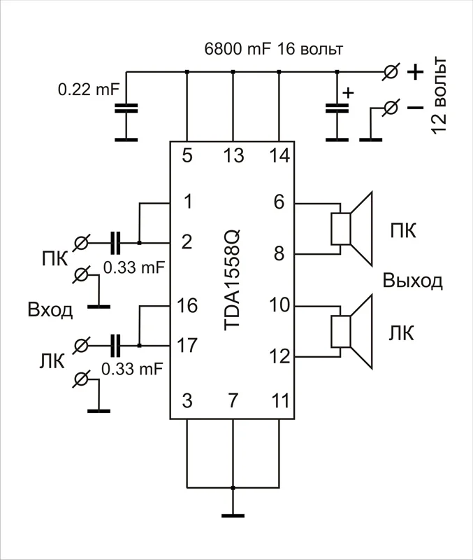 все таки одного немогу понять . вот которую я тебе показывал старую схему та которая требует большого напряжения . tda2003 она же требует не такого уж и большого напряжения вроде как от 8 до 18 вольт . А ты говоришь что ей нужно чуть ли не 220V...