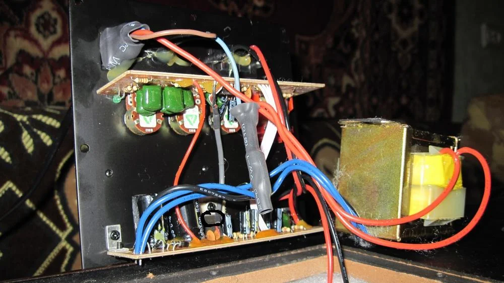 усилок шум выдает - значит работает, трабла в питании или по входу