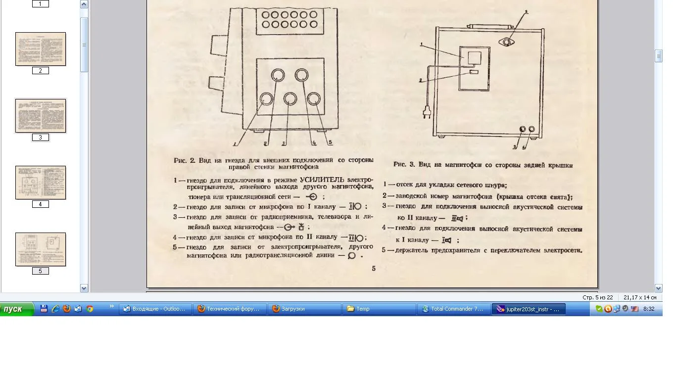 Солнышко! Входа звукоснимателя там тоже нет, почитайте сами инструкцию и не надо умничать пожалуйста! На фото, гнездо номер 1 являеться линейным входом для записи с линейного выхода другого воспроизводящего устройства. Миленькая, прежде чем писать, сами ознакомтесь с документацией, а у меня этих магнитафонов море и эта модель тоже есть в наличии, если надо я сделаю вам фото реального магнитафона.