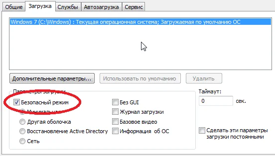 отвечает за опцию загрузки ( и если все время оставлять вот так (это пример на ос 7sshot-1.webp ) то только безопасный будет загружатся.